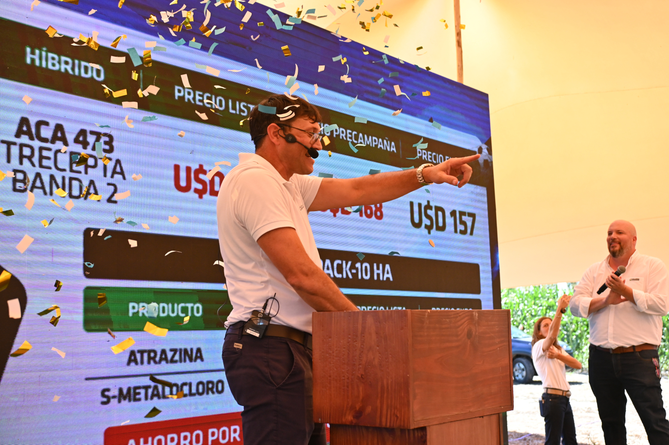 En ese sentido, el Gerente Comercial de Granos, Franco Simeoni, remarcó el resultado de la innovación implementada durante el evento. “Hicimos una gran apuesta y estábamos confiados en lo que estábamos haciendo. Pusimos una modalidad de venta a la cual el productor no estaba acostumbrado, para poder comercializar en una rueda de negocios. Fue un remate, literal, pero sin precios, pujando stock, con packs donde cada semilla iba con su respectivo agroquímico. Funcionó y estamos muy felices. A los productores no solo les gustó la idea, sino que nos acompañaron”, afirmó.