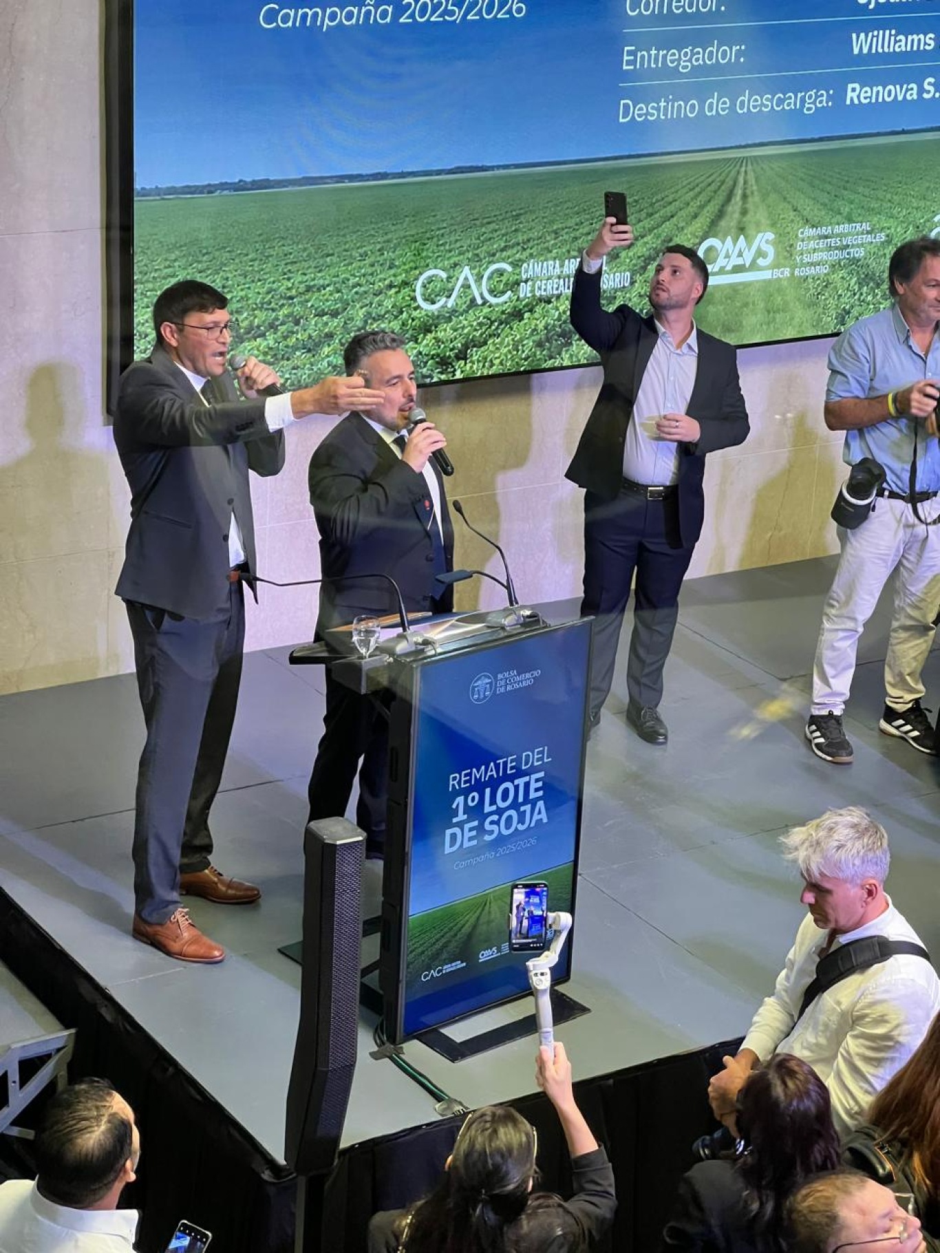 Durante el desarrollo, el martillero fue el responsable de conducir la definición del número simbólico, interpretando las voluntades presentes, tarea que compartió con Ojeda. El resultado fue un valor récord de $ 1.850.000 por tonelada, sobre una base de $ 432.000, en la compra realizada por Macro Agro, un registro que generó una inmediata repercusión en el ámbito institucional y comercial del sector.